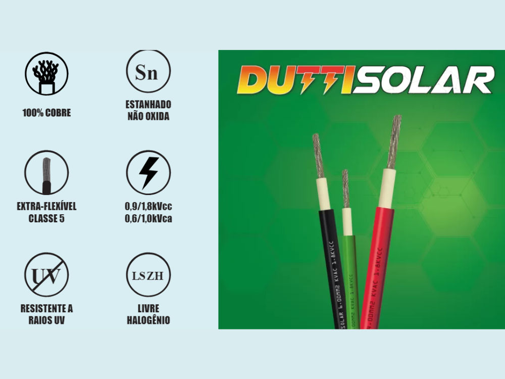 Na hora de criar seu projeto de sistema solar, veja as nossas opções de cabos fotovoltaicos. A Eletronicweb oferece aos seus clientes cabos para energia solar de qualidade, que seguem as normas NBR 5410 e NBR NM 280, resistentes a raios UV e livre de halógenos.