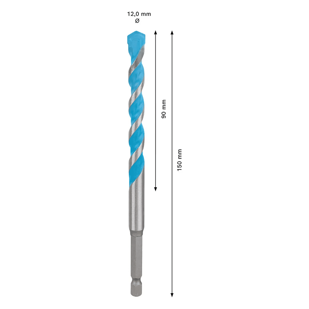 Diferenciais técnicos: Haste hexagonal de 1/4", compatível com chaves de impacto, parafusadeiras e furadeiras (com ou sem impacto). Conta com ponta centradora para perfuração estável e carbeto de tungstênio Bosch com arestas afiadas em diamante, garantindo maior resistência ao desgaste e versatilidade multimaterial.