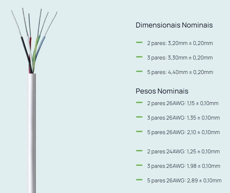 Diâmetro do Condutor: 26AWG ou 24AWG
