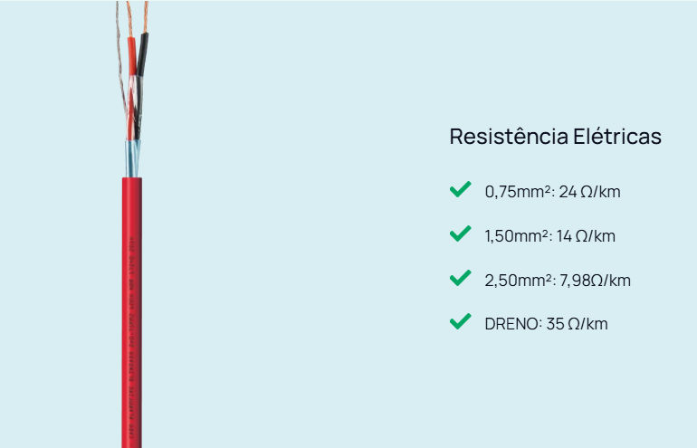 Possui condutor dreno encordoado em cobre estanhado 0,50mm2.