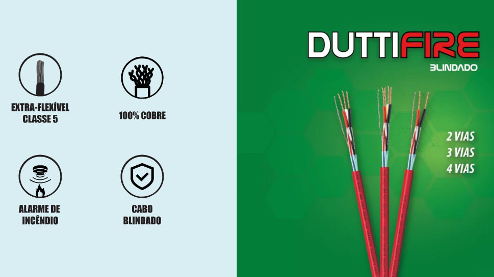 Indicado para sistemas de COMBATE A INCÊNDIO, os cabos DuttiFIRE utilizados em circuitos de sinalização e instrumentação para centrais Convencionais e Endereçáveis.