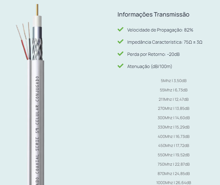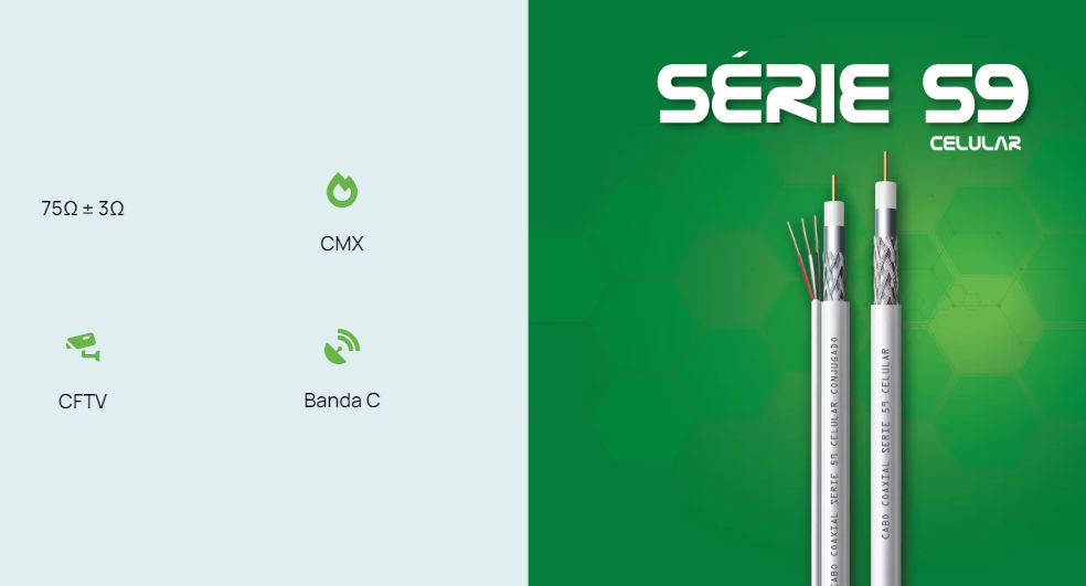 Aplicado em Antenas Parabólicas (Banda C) e CFTV o Cabo Coaxial Série 59 (RGC 59) é homologado ANATEL.