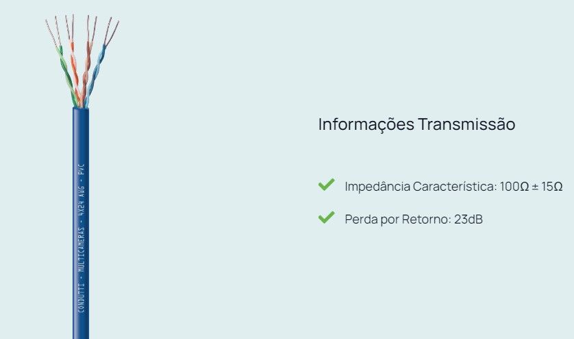 CONDUTTI – CABO MULTICAMERAS – 4 PARES 24AWG – PVC 75°C – Cabo para aplicação em CFTV – ANATEL: 07377-21-11616 – < LOTE > – < TURNO > – < HORA > – < MARCAÇÃO METRICA >