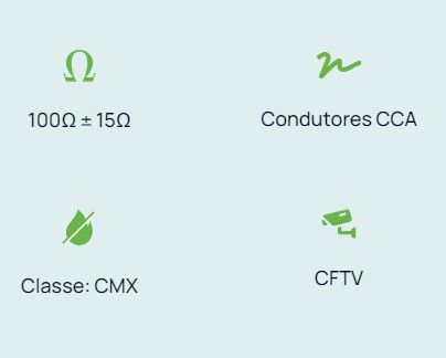Cabo Multicameras é fabricado com Condutores em alumínio cobreado torcidos par a par e isolados com polietileno de alta densidade, capa em PVC 75°C com componentes anti-chama classe CMX ideal para aplicações interna.