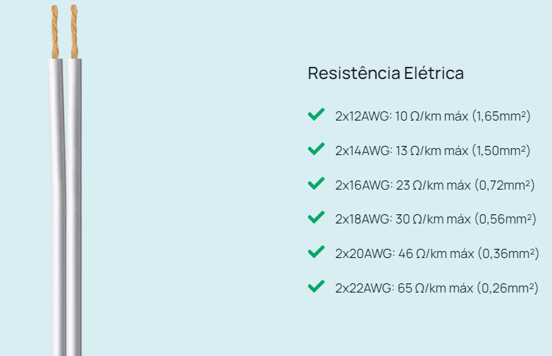 Condutores Extra-Flexíveis 100% cobre eletrolítico mole, torcidos os cabos paralelos Condutti são fabricados para atender diversas aplicações, entre elas, alimentação de câmeras ou sonorização ambiente. A capa externa na cor branca em PVC Antichama possui marcação em relevo para polarização.