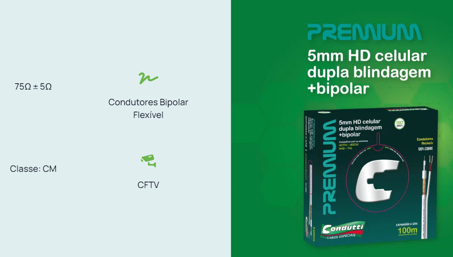 Tenha ALTA PERFORMANCE e segurança nas instalações para CFTV HD analógico obtendo melhores resultados em distancias maiores com a formação dos condutores bipolar flexíveis em cobre nu 2x20AWG.