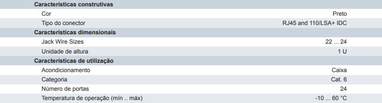 Atende aos requisitos estabelecidos pela norma Cat6, Classe E.