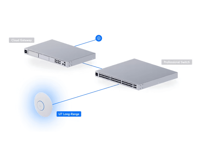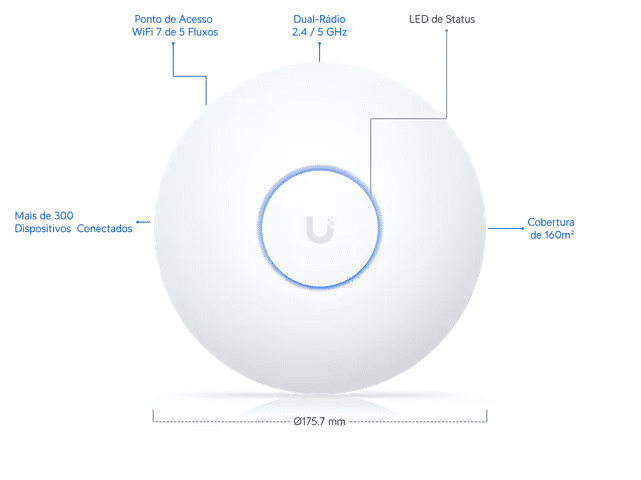 Access Point WiFi 7 de longo alcance, ideal para grandes ambientes, com desempenho estável, suporte a múltiplos dispositivos e uplink 2,5 GbE PoE+.