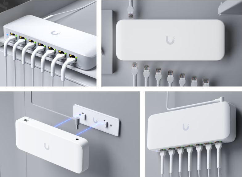 Um switch GbE PoE compacto, de Camada 2, com 8 portas e opções de montagem versáteis.