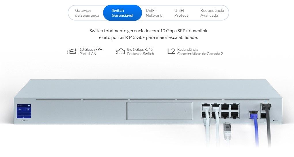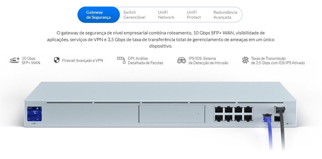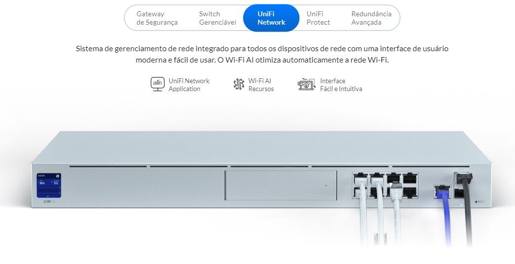 Console UniFi OS all-in-one de nível corporativo e com função gateway de segurança projetado para hospedar toda a suíte de aplicações UniFi.